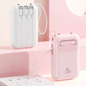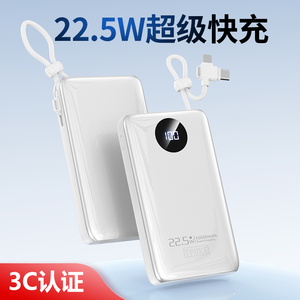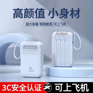 快充自带4线充电宝20000毫安大容量耐用小巧便携通用手机移动电源