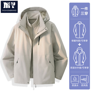 春秋季男女款三防夹克纯色简约户外工装情侣款宽松三合一外套