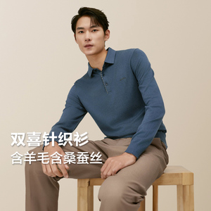 【含羊毛/POLO衫拉链针织】柒牌套头薄翻领毛衫人字纹翻领polo衫