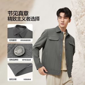 【满身提花工装茄克】柒牌男装夹克2025秋季商务休闲弹力翻领外套