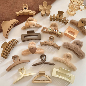 秋冬毛绒抓夹女大号发卡高级感后脑勺毛毛发夹发抓鲨鱼夹夹子头饰
