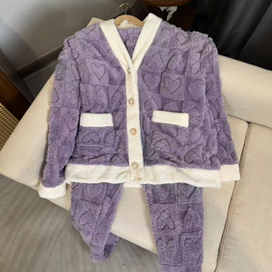 新世家族半边绒睡衣女开衫可外穿