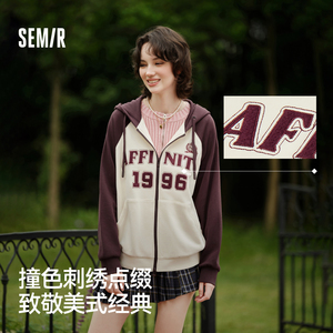 森马连帽插肩袖宽松刺绣外套女