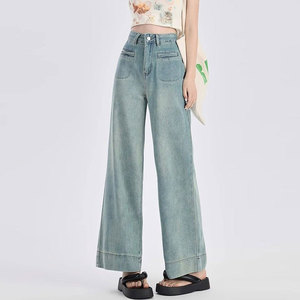复古蓝高腰阔腿牛仔裤宽松长裤女