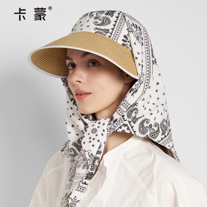卡蒙宽松大檐草帽头巾一体防晒帽